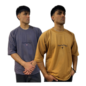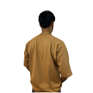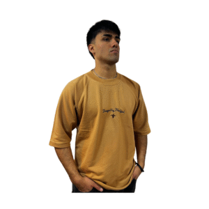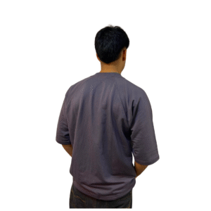 El modelo mide 1,83 metros y está usando una remera talle L.